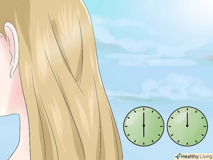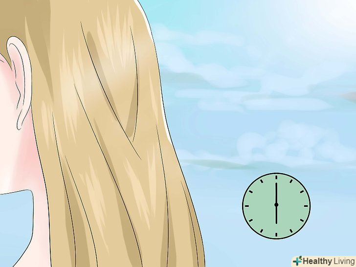 Посидьте на сонці, щоб лимонний сік почав діяти. Побудьте на сонці приблизно 30 хвилин. У той час, як волосся будуть висихати, вони будуть світлішати.- Не забудьте захистити шкіру від впливу прямих сонячних променів сонцезахисним кремом і одягом.