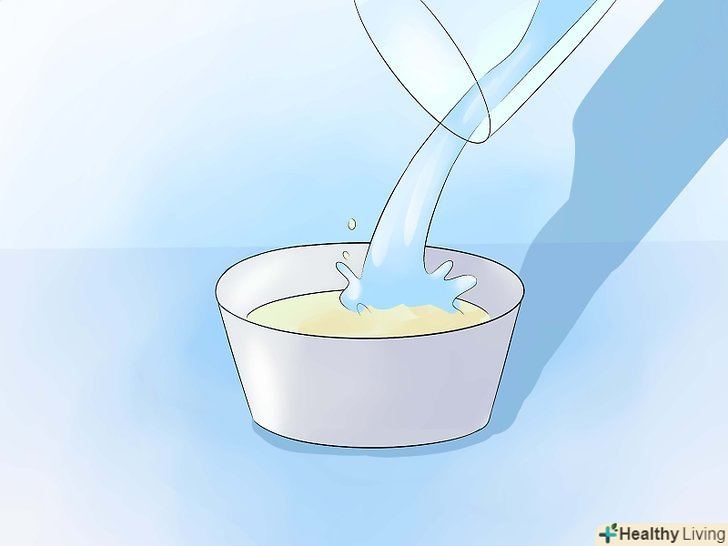 Додайте в миску води. розведіть сік лимона, додавши до нього таку ж кількість води. Наприклад, якщо у вас півсклянки соку, то додайте до нього півсклянки води.