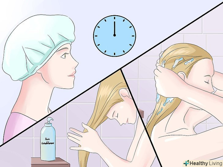 Вимийте волосся і нанесіть кондиціонер. змийте суміш, вимийте голову з шампунем, нанесіть кондиціонер і дайте волоссю висохнути. Повторіть процедуру, якщо хочете більш світлий відтінок.