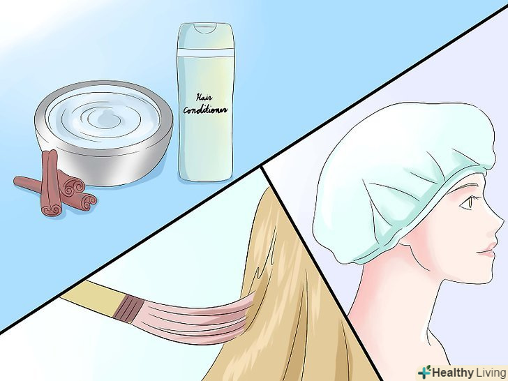 Змішайте мелену корицю з кондиціонером до консистенції густої пасти. нанесіть на волосся пензлем і накрийте алюмінієвою фольгою (для пасом) або шапочкою для душу (для всіх волосся).