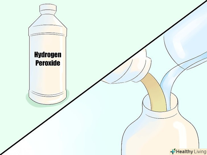 Зробіть розчин перекису водню і води. змішайте субстанції в пляшці з розпилювачем в рівних частинах.- Ви можете купити нову пляшку в аптеці або використовувати вже наявну.