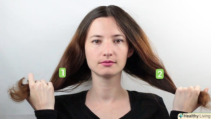 Поділіть волосся на дві секції. найпростіше буде створити для цього центральний проділ в волоссі. Переконайтеся в тому, що проділ вийшов рівним, а обидві секції волосся з боків від проділу щільно прилягають до голови.