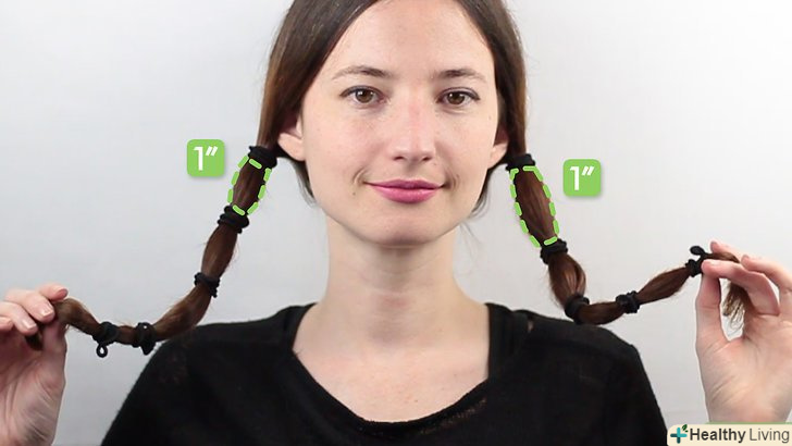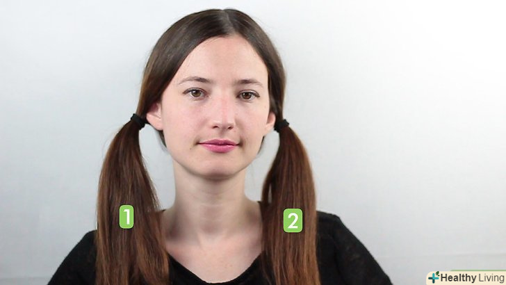 Зав'яжіть на волоссі два низько розташованих кінських хвоста. щіткою з натуральної щетини розрівняйте волосся обох секцій в напрямку від проділу до вуха. Зберіть ці секції в два кінських хвоста і для фіксації закріпіть їх м'якими гумками для волосся, наприклад тканинними. [12] не затягуйте гумки занадто туго, інакше під ними на волоссі залишаться видимі перегини.- Не використовуйте для фіксації хвостів гумові гумки. Вони чіпляють волосся і змушують їх плутатися.