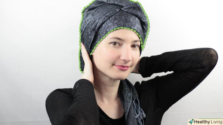 Оберніть голову шарфиком. щоб зберегти волосся щільно притиснутими до голови і зменшити кількість пушащихся волосся, вам буде потрібно обернути голову шовковистим шарфиком і при цьому досить туго. Можливо, вам спочатку буде некомфортно, але даний крок допоможе вам зберегти красу випрямленого волосся.- Якщо у вас немає відповідного шарфика, можна скористатися старими капроновими колготками. [16] обережно натягніть собі пояс колготок на голову, щоб вийшов аналог шапочки.