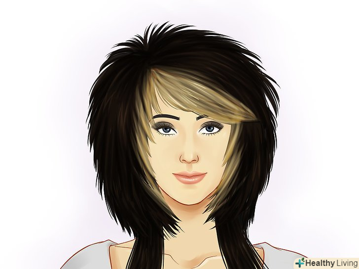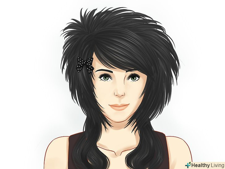 - Дівчатам не обов'язково фарбувати волосся для треш-ефекту, якщо ви не хочете. Якщо стрижка коротка-приколіть накладні волосся з смужками, потім підніміть або начешіть зачіску. Чим більше, тим краще! Якщо ви хочете виділитися оригінальністю – залиште або приберіть чубок.