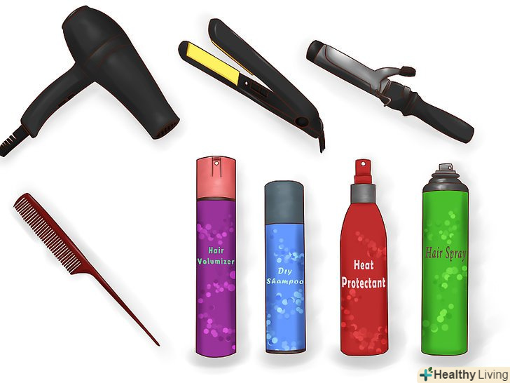 Підготуйте необхідні інструменти. те, що вам потрібно, залежить від природної структури і товщини вашого волосся. Однак, ось перелік деяких інструментів, які можуть вам знадобитися для укладання волосся:- Фен: щоб просушити кучеряве або хвилясте волосся, зробивши їх більш прямими перед розгладженням праскою.