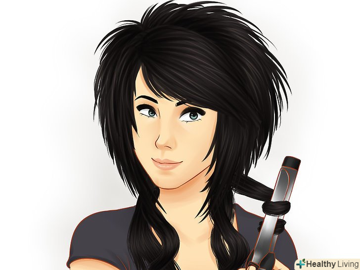 Випряміть волосся. Основа треш-зачіски-гладка, пряма фіксація, яка може зійти нанівець. Навіть якщо ви плануєте накрутити кінчики вашого волосся, ви, швидше за все, захочете спочатку їх випрямити. Ось деякі деталі, які ви повинні врахувати:- Якщо у вас кучеряве або хвилясте волосся, просушіть їх феном 10-15 хвилин після того, як вийдете з душу. Використовуйте круглу щітку або гребінець з окремими лопатями, і набризкайте термо-спреєм, перш ніж почати.