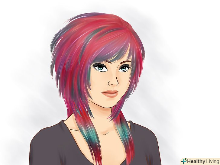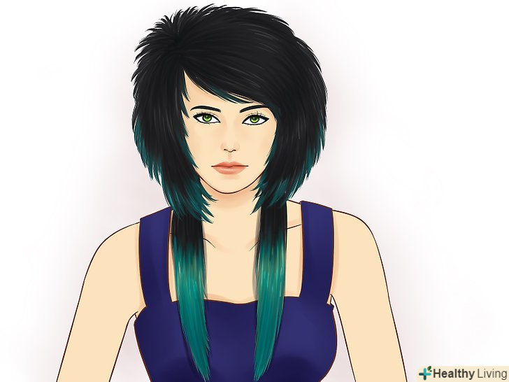 Фарбування кінчиків. фарбування кінчиків волосся вздовж довжини називають "поглибленням" (тому що деякі дійсно роблять глибоке забарвлення). Це найбезпечніший спосіб фарбувати волосся, адже якщо вам не сподобається колір, ви завжди можете відрізати кінчики, а не чекати, поки вони відростуть. Намагайтеся вибирати колір, який буде контрастно виглядати на тлі іншої частини волосся (світлі кінчики, якщо волосся темне, або темні кінчики, якщо волосся світле), або в яскраві кольори, такі як синій або фіолетовий.