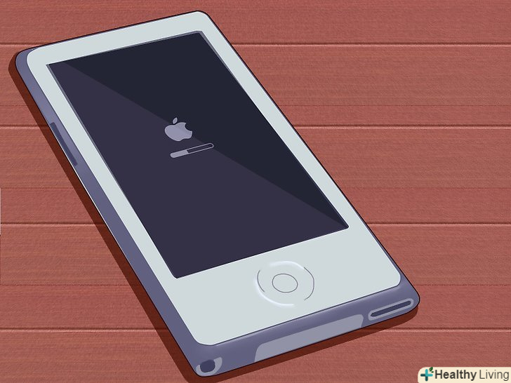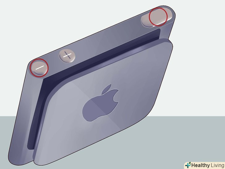 Перезапуск iPod nano 6-го покоління.шосте покоління iPod Nano має квадратну форму і екран, який займає всю передню частину пристрою. У шостому поколінні немає меню "коліщатка".- Натисніть і утримуйте кнопки "Sleep»і "Volume Down". Тримайте кнопки натиснутими як мінімум 8 секунд. Продовжуйте тримати до тих пір, поки не побачите на екрані логотип Apple.