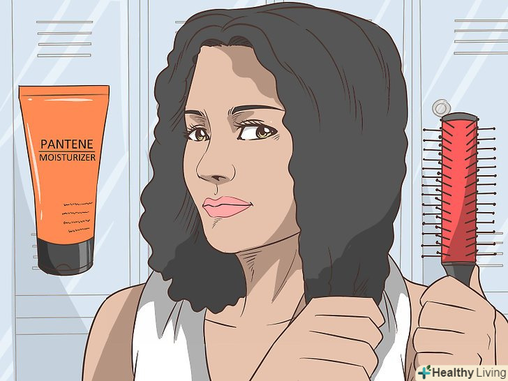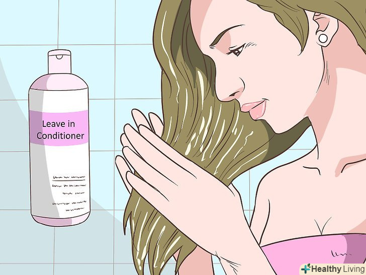 Намочіть волосся і нанесіть незмивний кондиціонер. необхідно наповнити свіжою водою пляшку з розпилювачем і зволожити волосся по всій довжині. Нанесіть будь-який обраний вами незмивний кондиціонер. Для цього видавіть трохи кондиціонера на долоні і втирайте його в корені волосся, а також розподіліть по всій їх довжині. Ваше завдання-нанести незмивний кондиціонер на волосся від коренів до самих кінчиків. [3]- Розбризкування води на волосся допомагає легко їх розчесати і домогтися ефекту миттєвого зволоження. [4]