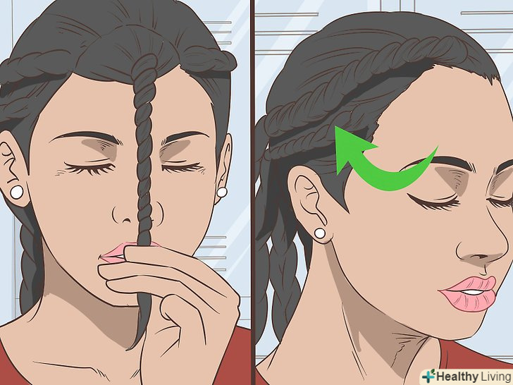 Заплітайте волосся. якщо ви володарка кучерявого волосся, туго скрутіть кожне пасмо на потилиці. На кожній пасма волосся у вас вийде зробити кілька витків. Так можна прибрати вже зволожені і розплутані локони волосся від особи в міру зволоження передніх пасом. [9]- Щоб зробити тугі витки, спробуйте перекрутити кожне пасмо навколо своєї осі, починаючи від самих кінчиків.