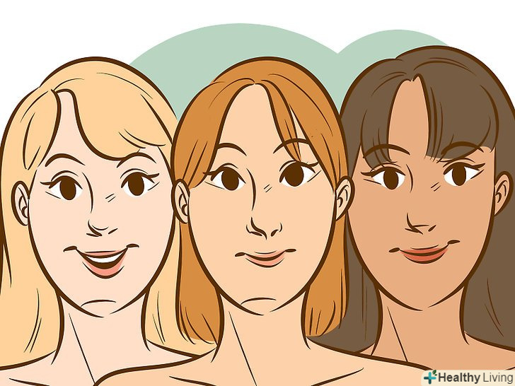 Врахуйте відтінок шкіри. у вас світла, середня або темна шкіра? Важливо врахувати це при виборі нового кольору волосся.- Якщо у вас бліда шкіра, вам підійдуть світлі відтінки. Якщо у вас світла шкіра теплих відтінків, спробуйте колір ірису, мідний блонд або медові відтінки. Якщо у вас світла шкіра холодного тону, вам підійде платиновий, солом'яний колір і колір шампанського.