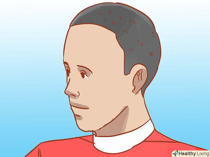 Подумайте, чи не хочете ви зробити стрижку в армійському стилі. в цьому випадку волосся на маківці будуть трохи довше, ніж з боків.- Щоб зробити таку стрижку, спочатку використовуйте насадку номер 5, а потім подумайте, чи хочете ви більш коротке волосся на маківці. На цьому етапі не хвилюйтеся про довжину волосся з боків: хоча ви і підстриже всю голову, поки вам потрібно думати тільки про волосся на маківці.