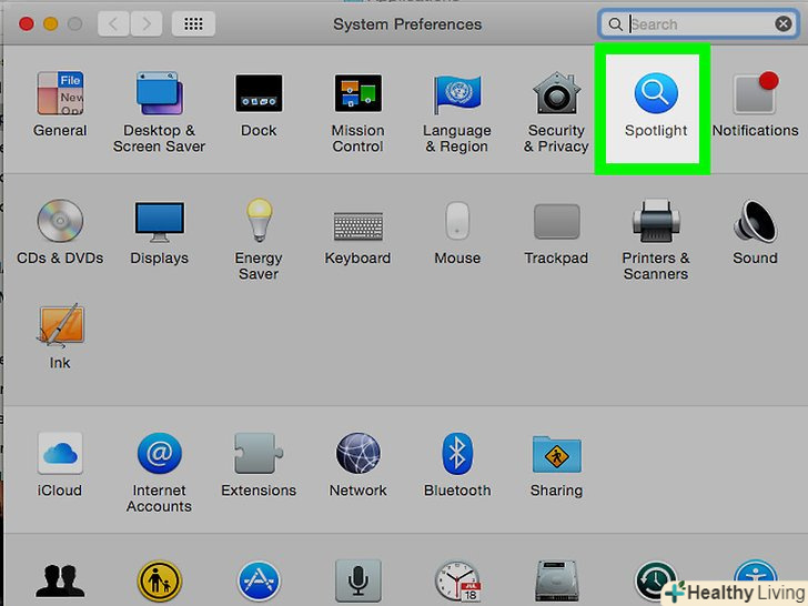 Відкрийте Spotlight. натисніть на вказаний значок, який розташований в правому верхньому куті екрану.
