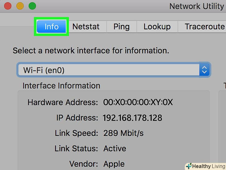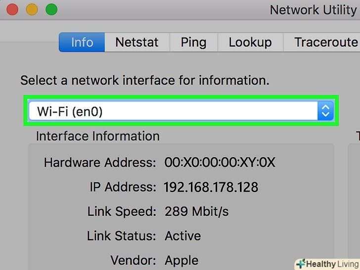 Виберіть дротове інтернет-з'єднання.відкрийте меню під «виберіть мережевий інтерфейс для перегляду інформації", а потім натисніть на назву свого підключення до Інтернету.