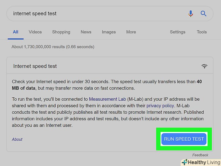 - В даному методі використовується онлайн-інструмент для тестування швидкості підключення до Інтернету від Google. Якщо вам не подобається цей інструмент, скористайтеся альтернативним сервісом, наприклад,Інтернетометром від Яндекса.