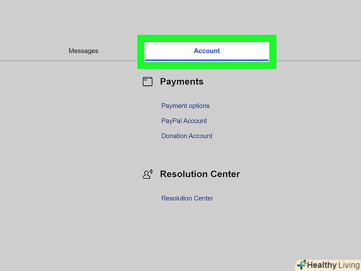 Клацніть по вкладціОбліковий запис.вона знаходиться посередині ряду опцій в розділі "Мій eBay".