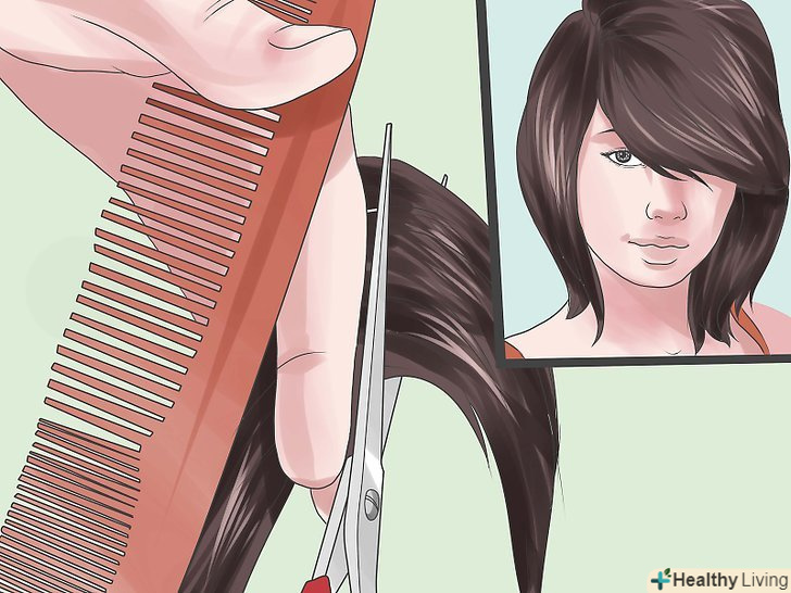 Обріжте нижню частину волосся. більшість емо зачісок відрізняються скуйовдженим і об'ємним верхом, але тонкою і прямою нижньою частиною. Буде легше досягти такого ефекту, якщо ви попросите стиліста, підстригти краю на 7,5 або 10 сантиметрів.