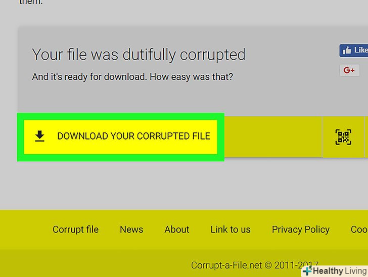 Прокрутіть вниз і натиснітьCORRUPT FILE (пошкодити файл).ця кнопка знаходиться внизу сторінки. Почнеться процес пошкодження файлу.- Процес займе від декількох секунд до декількох хвилин в залежності від розміру файлу.
