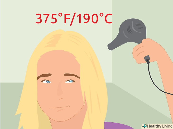 Застосовуйте тепло помірно. Фени, прасування і плойки травмують волосся, а гаряче повітря їх пересушує. Перед початком процедур із застосуванням тепла необхідно нанести на волосся захисний засіб. [14] при цьому краще використовувати прилад на мінімальних налаштуваннях температури. Такий метод зажадає більше часу, але це того варто.- Використовуйте прасування і плойки для волосся з регуляторами температури. Не слід встановлювати температуру на приладі вище 190 °C. [15]