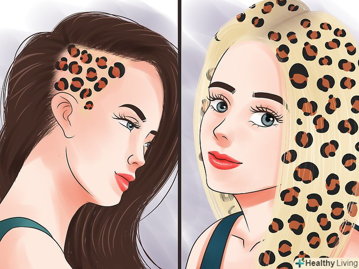 Проведіть селерою з барвником по всій базовій довжині волосся. можна робити між ними інтервали, але пам'ятайте, що вони не повинні бути однаковими.- «С-подібні» плями виглядають більш реалістично, як на справжньому Леопарді.