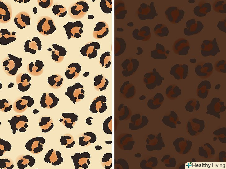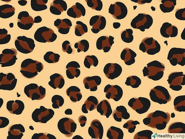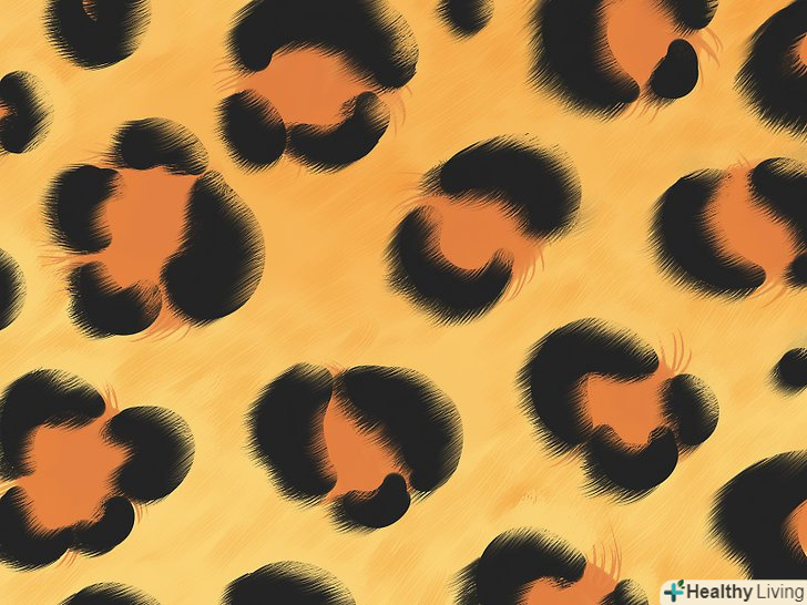 - Типовою комбінацією для реалістичних леопардових плям є жовтий / блонд базовий колір, чорний граничний колір, і легкий рожевий, червоний або коричневий колір заливки.