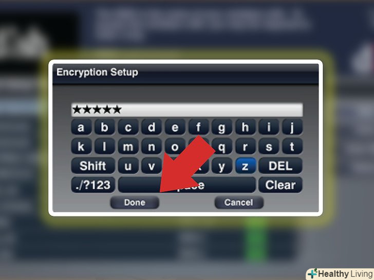 У вікні «Encryption Setup» (Код шифрування) введіть пароль від своєї бездротової мережі.якщо ваша мережа Wi-Fi не захищена паролем, спливаюче вікно не з'явиться.