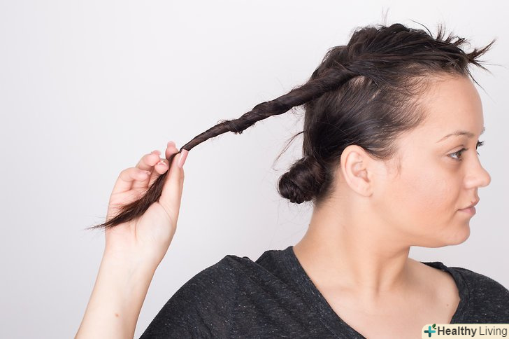Скрутіть кінський хвіст в пучок. скрутіть кінський хвіст в одному напрямку, почавши від основи і закінчивши його кінчиком. [4] коли дійдете до кінчиків волосся, продовжуйте скручувати їх. Хвіст сам поступово почне закручуватися в пучок. Завершіть укладання волосся в кручений пучок, обмотавши їх навколо гумки у напрямку природним чином сформувалася спіралі.