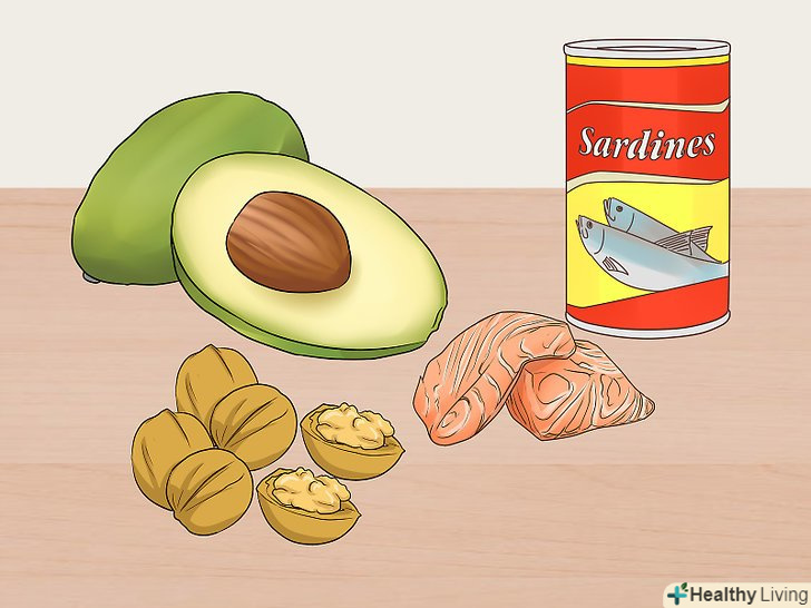 Їжте продукти, що містять жирні кислоти омега-3. для волосся необхідна достатня кількість омега-3 жирних кислот. Постарайтеся збільшити споживання наступних продуктів, щоб наситити організм омега-3:- Лосось