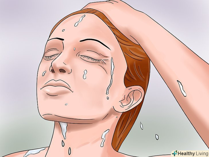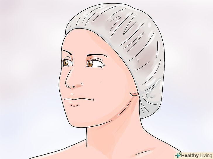 - Кокосове масло має тверду консистенцію при кімнатній температурі, тому розігрійте його в руках або мікрохвильовій печі (в останньому випадку перед нанесенням масла простежте, щоб воно було теплим, а не занадто гарячим). Нанесіть пару чайних ложок (10 мілілітрів) масла на вологе волосся і оберніть голову старим рушником (кокосове масло може забруднити тканину). Залиште масло в волоссі на 1-2 години, потім змийте його і вимийте голову шампунем. [11]