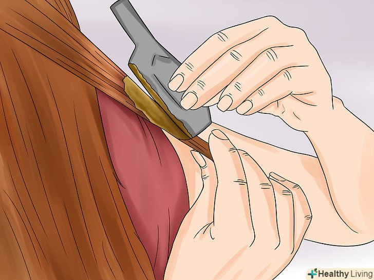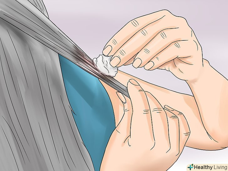 Випробуйте барвник на пасма волосся. дія натурального барвника буде залежати від вашого типу волосся, а також від різних засобів для волосся, якими ви користувалися в минулому. Збережіть кілька пасом волосся, коли будете в черговий раз стригтися, або зріжте невелике пасмо на потилиці. Відповідно до інструкцій для обраного Вами методу нанесіть на пасмо барвник, який ви збираєтеся використовувати. [6]- Після того, як ви нанесете барвник на пасмо, почекайте стільки часу, скільки передбачено в обраному вами методі. Потім як слід обполосніть пасмо водою і висушіть під прямим сонячним світлом, якщо є така можливість.