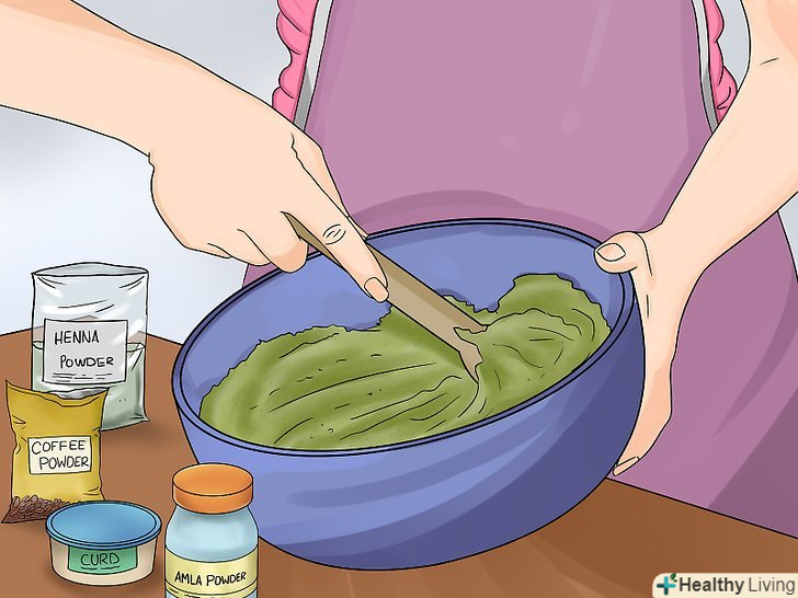 Приготуйте пасту з хни, якщо у вас руде, темно-русяве або чорне волосся. додайте в порошок хни три чайні ложки порошку амли, одну чайну ложку меленої кави і трохи молочної сироватки або несолодкого йогурту. Як слід перемішайте інгредієнти. [12] перекладіть суміш в миску і поступово додайте 1-2 склянки (240-480 мілілітрів) гарячої (але не киплячої) води, поки не вийде густа паста. Ретельно перемішайте інгредієнти. Щільно накрийте миску кришкою або пластиковою плівкою. Потримайте суміш при кімнатній температурі 12-24 години, перш ніж наносити її на волосся.- Амла (ембліка, або індійський агрус) не сушить і надає русявому волоссю прохолодний відтінок, що робить їх більш темними. Можна не використовувати амлу, якщо ви хочете отримати яскравий оранжево-рудий колір. Крім того, амла надає волоссю об'єм, покращує текстуру локонів і завиває їх.