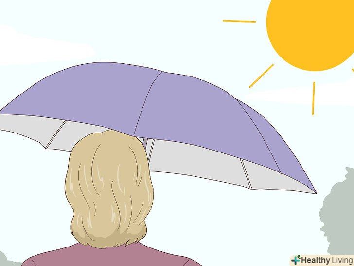 Захищайте волосся від сонця. знебарвлені волосся особливо чутливі до ультрафіолетового випромінювання, що може призвести до опіків шкіри голови. Якщо ви збираєтеся пробути на сонці більше години, надіньте головний убір або візьміть парасольку від сонця. [10]Рада: щоб ще краще захистити волосся, нанесіть на них сонцезахисний спрей, що містить кокосове масло або масло дерева ши (масло каріте).