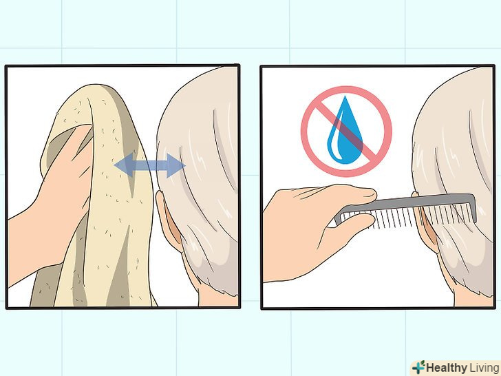 Дбайливо поводьтеся з волоссям, особливо мокрими. мокре волосся особливо схильні до пошкоджень, тому ніколи не розчісуйте їх, поки вони повністю не висохнуть. Також будьте обережні, витираючи волосся рушником . Обережно промокніть мокре волосся м'яким рушником з мікрофібри. Не варто сильно викручувати або терти волосся рушником, це може їх пошкодити. [5]- Якщо у вас немає м'якого рушника, можна промокнути волосся старою футболкою!