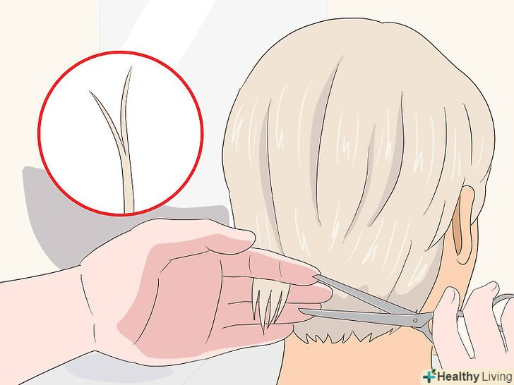 - Якщо ви не хочете радикально вкорочувати довжину волосся, попросіть свого перукаря зрізати приблизно 0,5 см.після цього волосся необхідно підрівнювати щомісяця, кожен раз потроху зрізуючи пошкоджені кінці.