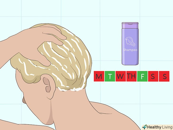 Мийте голову шампунем 1-2 рази на тиждень. Шампунь знежирює волосся, позбавляючи їх харчування і захисту. Оскільки знебарвлені волосся і так сухі і знежирені, мити їх слід рідше. Якщо це можливо, мийте голову з шампунем не частіше одного разу на тиждень. [9]- Якщо мити голову один раз в тиждень не виходить, обмежтеся хоча б 2-3 застосуваннями шампуню в тиждень. У проміжках, якщо волосся виглядає дуже брудними, можна користуватися сухим шампунем.