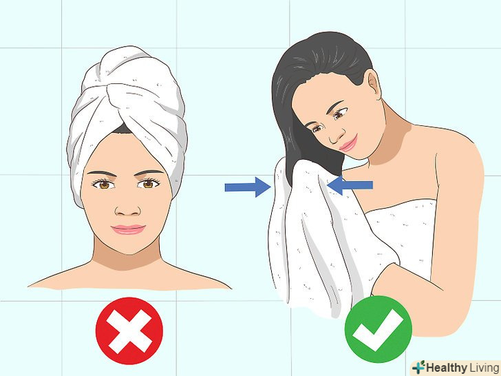 Уникайте обгортання волосся рушником. обгортання волосся рушником після душу призводить до ламкості волосся. Замість цього акуратно вичавіть або промокніть зайву воду. [9]- Можете обертати волосся рушником з мікрофібри, так як воно м'якше, ніж звичайне бавовняне.