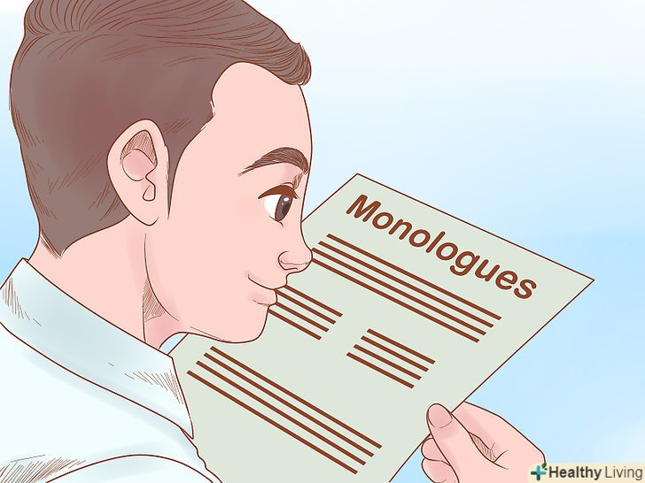 Вивчіть монологи.на більшості прослуховувань вам буде запропоновано представити один-два монологи. Це ваш шанс показати свою гнучкість як актора. Виберіть монологи, які відповідають вашій особистості та акторському стилю. Якщо ви вивчите і будете готові в будь-який момент відтворити хоча б три монологи, це допоможе постійно бути в готовності для потенційного кастингу: адже ви можете отримати запрошення коли завгодно.- Виберіть 3-4 монологи різного плану. Потрібно мати в запасі драматичний монолог, комедійний монолог і так далі. Ви повинні показати кастинг-директору, що здатні охоплювати цілий спектр стилів і емоцій.