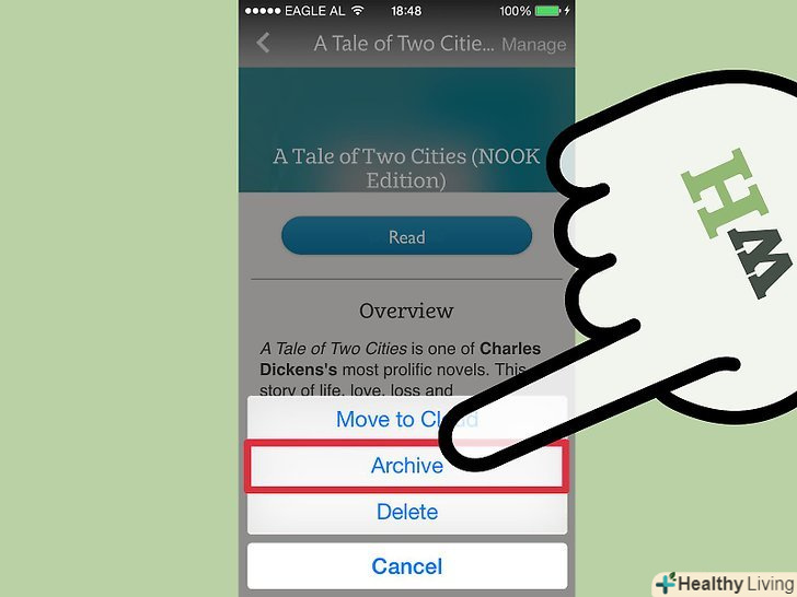 - Як зазначено вище, опція "Archive" ("архівувати") відрізняється від опції "Delete" ("Видалити"): остання видаляє книгу зовсім, стираючи її як з вашого пристрою, такі хмари, тому якщо ви збираєтеся прочитати будь-яку книгу в майбутньому, архівуйте її.