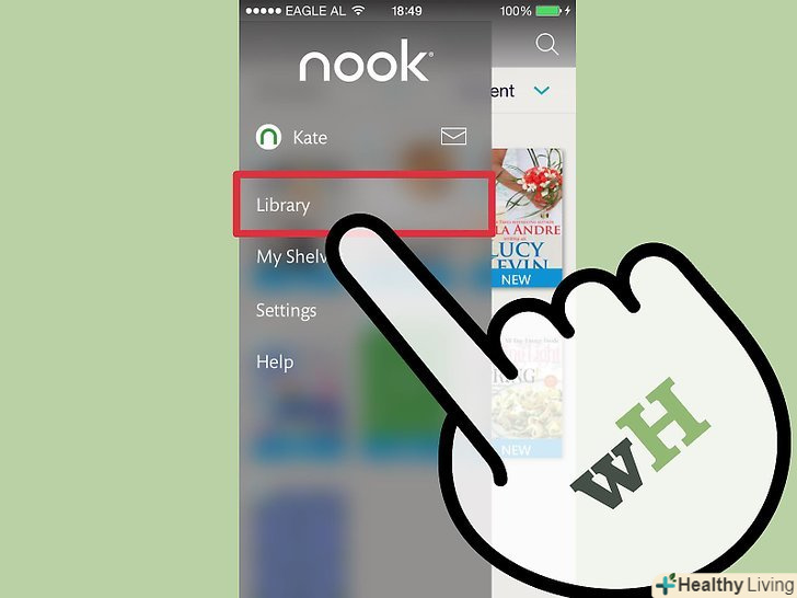 Увійдіть до своєї бібліотеки.процес архівації книги в пристрої Nook в основному однаковий незалежно від того, користуєтеся ви планшетом або додатком Nook для мобільного телефону. Спочатку відкрийте бібліотеку Nook-меню, де відображаються записані раніше книги та інші документи.- На планшеті Nook клікніть на іконці, що нагадує перевернуту букву "U", щоб зайти в навігаційну панель. Після цього клікніть "Library" ("Бібліотека"), і ви зайдете в бібліотеку.