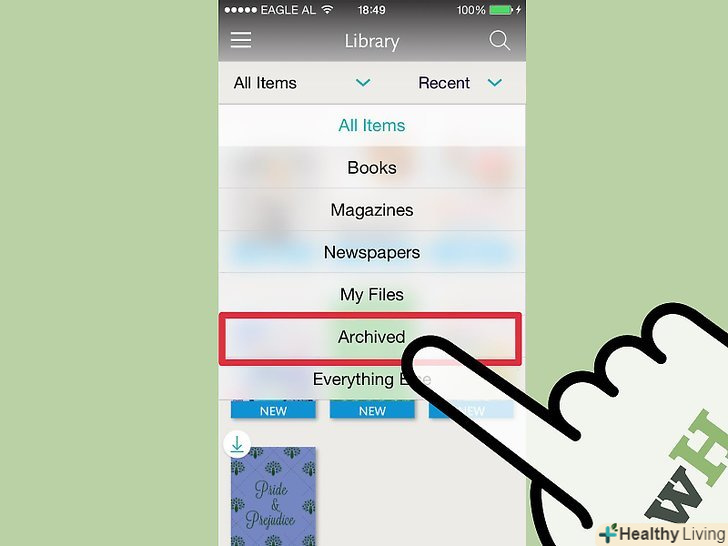 Зайдіть в розділ "Archived"("архів").після входу в бібліотеку клікніть клавішу "My Shelves"("мої полиці"). На дисплеї відобразиться список ваших "полиць", тобто різні розділи вашої бібліотеки. Прокрутіть список, знайшовши полку "Archived"("архів"). Клацніть на ній.