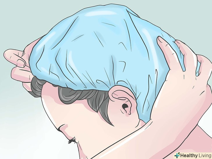Обмотайте голову рушником або надіньте шапочку або пакет на голову. краще використовувати рушник, оскільки воно не дасть масці стекти з волосся. Важливо, щоб якомога більше маски залишилося на волоссі. Якщо будете використовувати рушник, не забудьте випрати його в той же день.