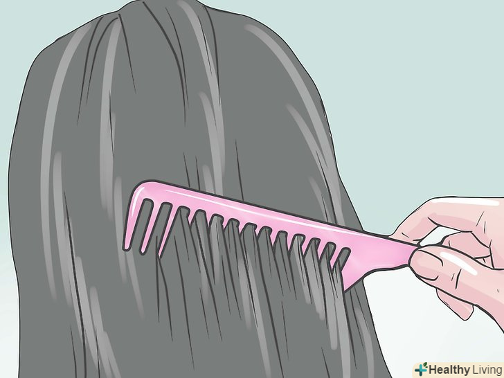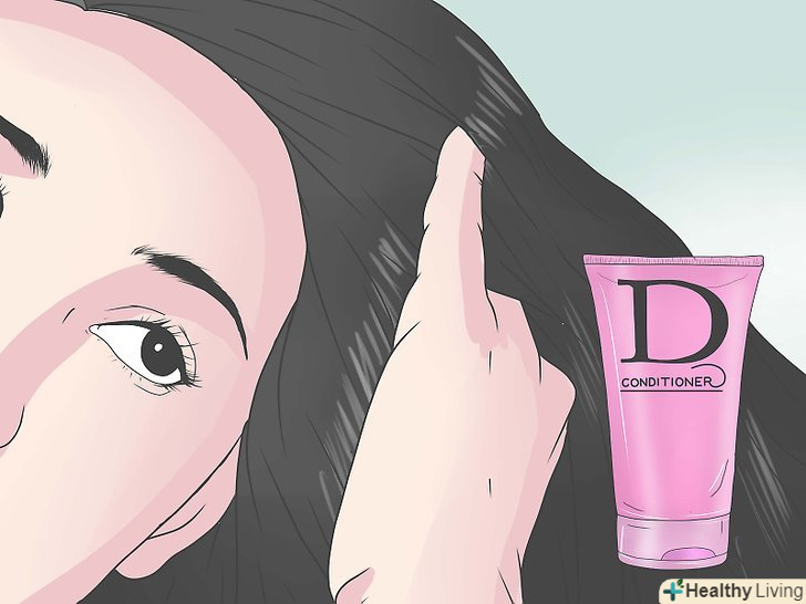 Поки ваше волосся ще вологі, нанесіть на кінці трохи незмивного кондиціонера-це зробить їх більш м'якими. не наносьте такий кондицинер на шкіру голови, оскільки це може тільки посилити випадання волосся і звести нанівець всі ваші старання.- За бажанням можна нанести на кінчики кокосове масло замість кондиціонера. Якщо вам потрібен зовсім бюджетний варіант незмивного кондиціонера, скористайтеся Deep 3-minute Miracle Conditioner від Aussie, змішавши його з водою для більш рідкої консистенції. Нанесіть невелику кількість на кінчики, і ефект буде такий же, як від незмивного кондиціонера.