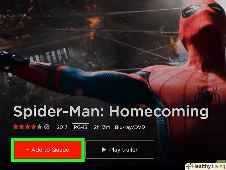 Дотримуйтесь інструкцій на екрані.якщо ви вперше підписуєтеся на оренду DVD-дисків, ви отримаєте безкоштовну 30-денну пробну версію, яка запрацює негайно. В іншому випадку вам буде виставлено рахунок за перший місяць оренди DVD-дисків.- Відкрийте сайтhttps://dvd.netflix.com, щоб знайти DVD-диски. Щоб додати DVD-диск у свою чергу, натисніть «Add to Queue» (додати в чергу) або «Add» (додати) на інформаційному екрані фільму або шоу.