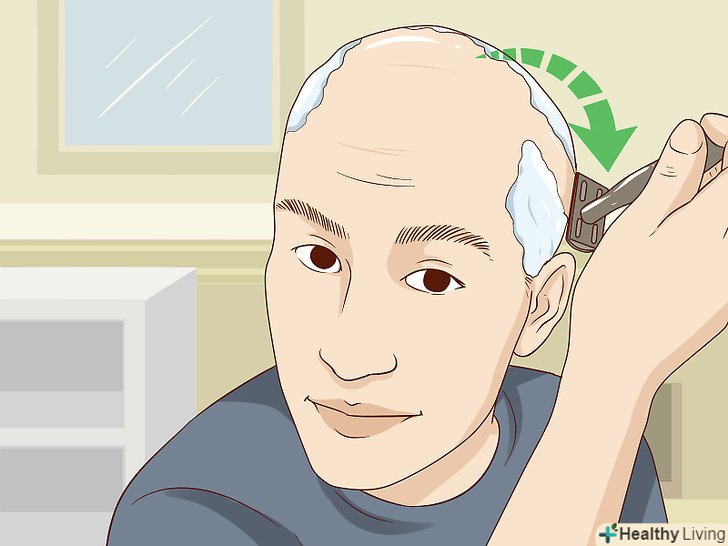Кожен раз для гоління голови використовуйте тільки нову бритву, щоб звести до мінімуму можливе подразнення шкіри. тупе лезо створює більше тертя, через якого шкіра голови може почервоніти і почати свербіти. Крім того, застосування тупий бритви може призводити до закупорки пір і утворення врослого волосся. [8]- Бритву потім можна використовувати для гоління інших зон, якщо ви не бажаєте її просто так викидати.