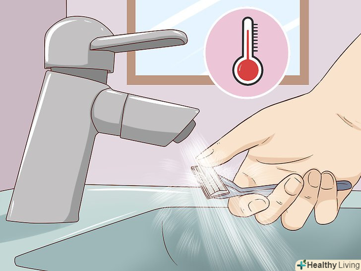 Споліскуйте бритву гарячою водою після кожного проходження по шкірі. це дозволить зберегти її чистою і не дасть лезу засмітитися волосками. Чисте лезо буде менше дратувати шкіру, крім того, так ви зменшите ймовірність закупорки пір. [15]- Незважаючи на те що найкраще споліскувати бритву проточною водою, також допустимо Полоскати її і в чашці з гарячою водою.