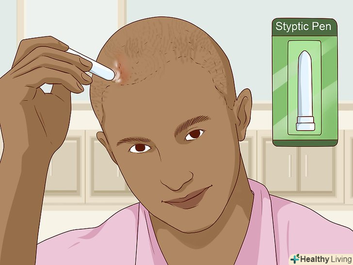 Обробіть порізи і пошкодження кровоспинним олівцем або брикетом квасцов. огляньте голову на предмет слідів крові. Помітивши поріз або пошкодження, обробіть його кровоспинним олівцем або брикетом квасцов. Це дозволить зупинити кров і продезінфікувати ранку. [19]- Кровоспинний олівець і галун в брикетах можна придбати в аптеці або через Інтернет-магазини.