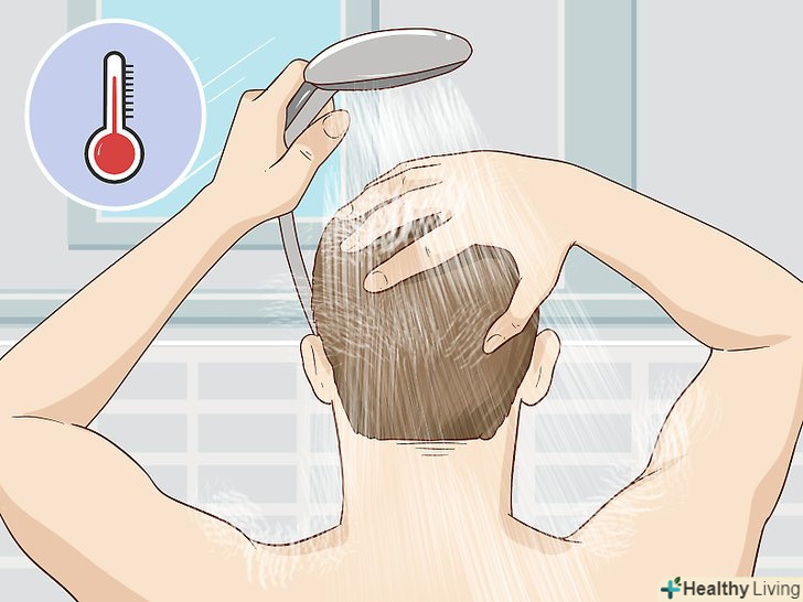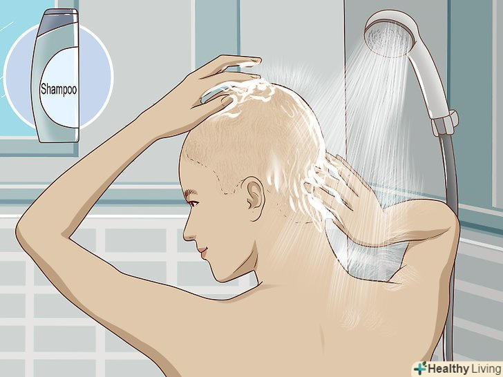 Після гоління сполосніть шкіру голови холодною водою, щоб закрити пори. зайдіть в душ, щоб швидко обполоснутися. Це не тільки дозволить закрити шкірні пори, але і змиє з вас дрібні волоски, які могли прилипнути до шкіри після гоління. [17]- Немає необхідності мити голову, але при бажанні все ж можна скористатися щадним шампунем або милом.