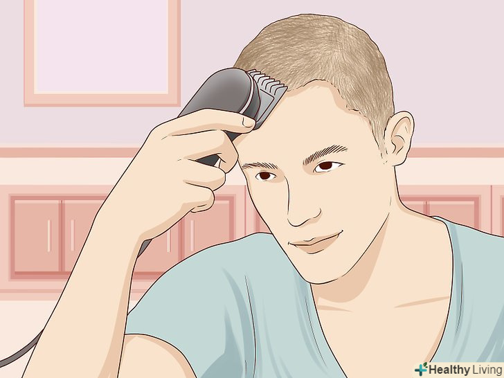 Для найкращих результатів спочатку коротко підстрижіть волосся машинкою для стрижки. зніміть з машинки насадку або ж встановіть її в положення 1, щоб максимально коротко зістригти волосся. Це скоротить опір маси волосся лезу бритви і забезпечить більш чисте подальше гоління. [6]- В якості альтернативи сходіть в перукарню і попросіть максимально коротко постригти вас машинкою.