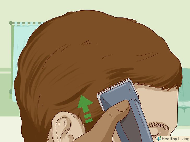 Працюйте машинкою в напрямку проти росту волосся. звичайною бритвою прийнято голитися у напрямку росту волосся. Проте, коли мова йде про машинці для стрижки, слід мати на увазі, що вона не підходить до шкіри настільки близько, як бритва. Крім того, працювати машинкою у напрямку росту волосся вкрай важко, так як важко зрізати волосся, які автоматично прилягають до голови, коли ви насуваєте на них машинку. [2]